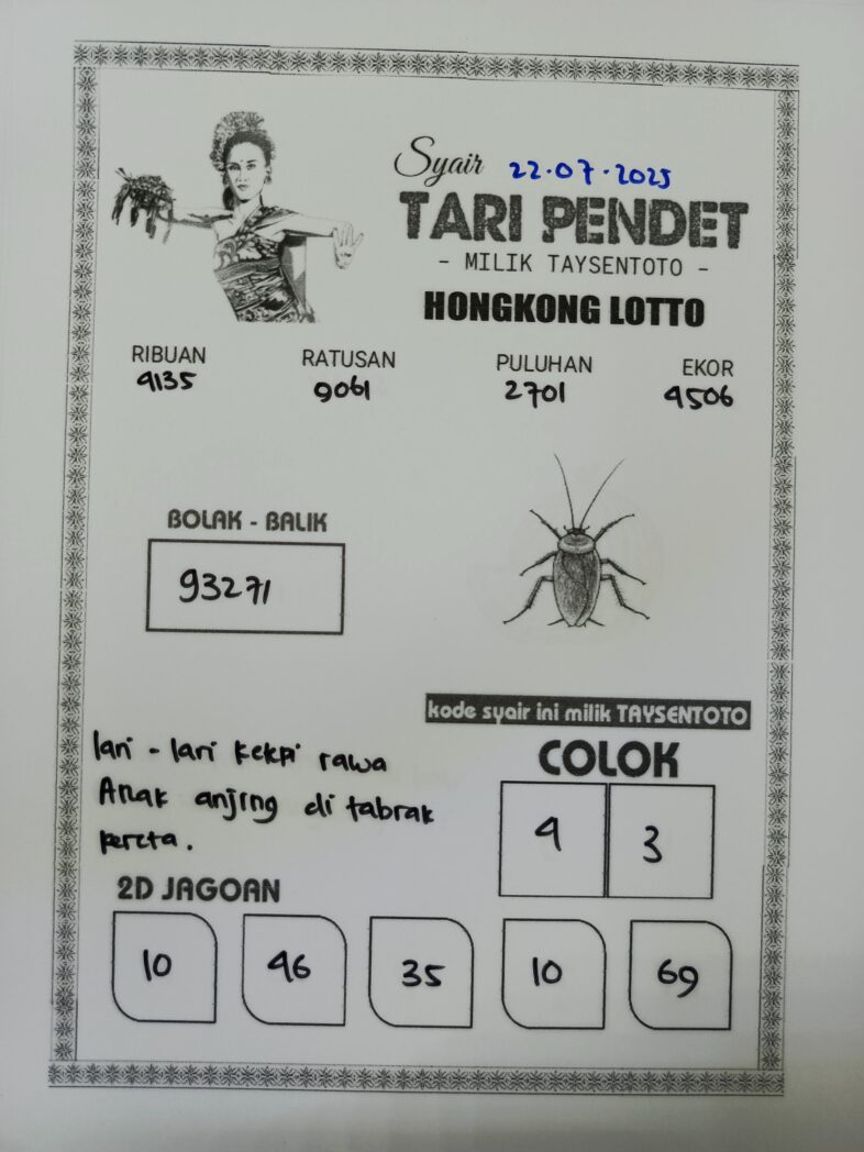 Syair Tari Pendet HK Hari Selasa, 22 Juli 2025