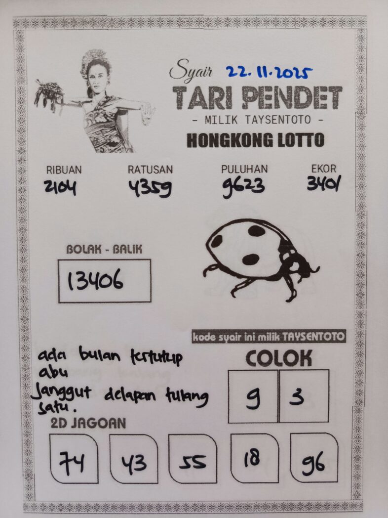Syair Tari Pendet HK Hari Sabtu, 22 November 2025