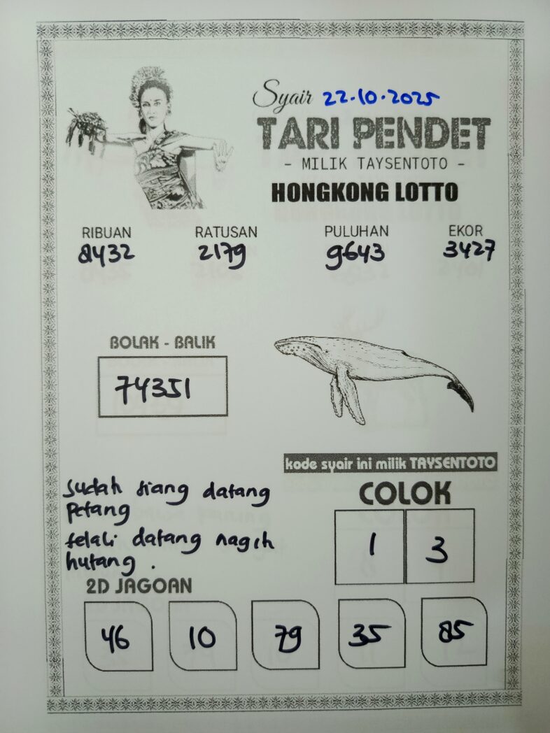 Syair Tari Pendet HK Hari Rabu, 22 Oktober 2025