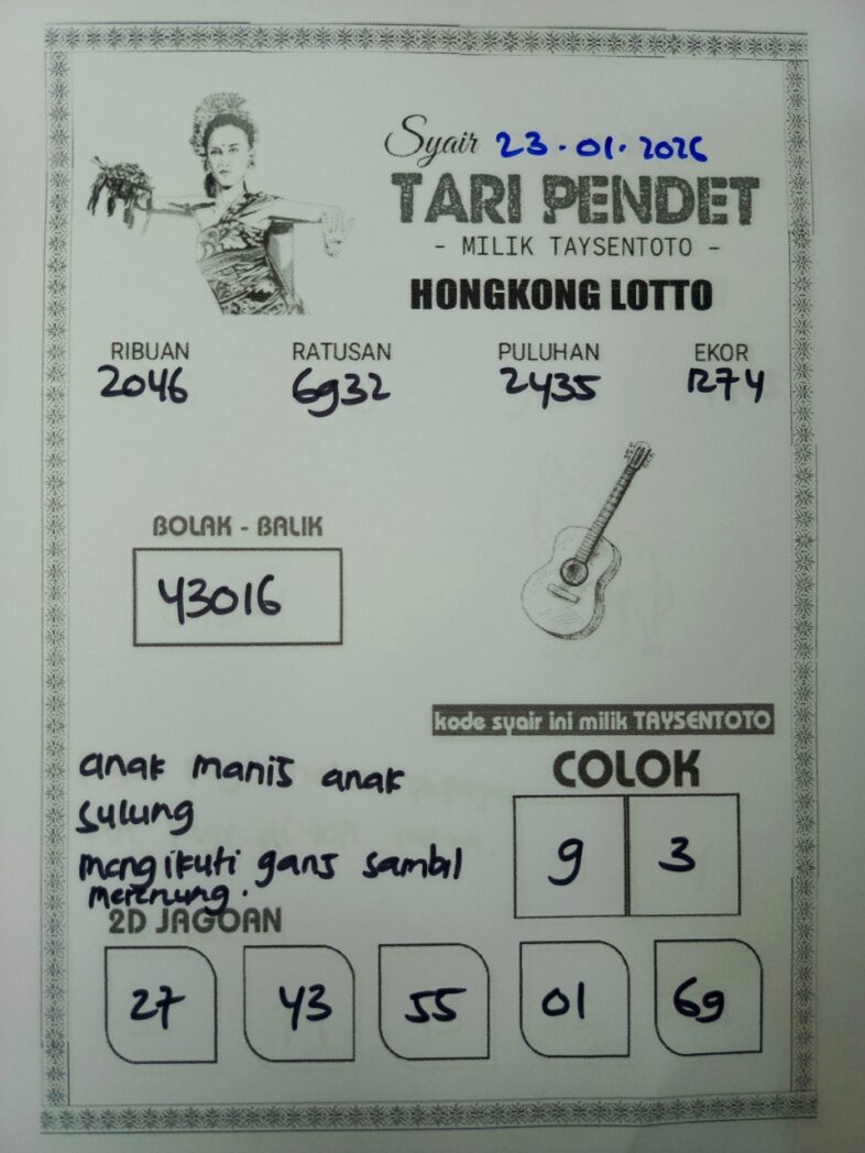 Syair Tari Pendet HK Hari Jumat, 23 Januari 2026