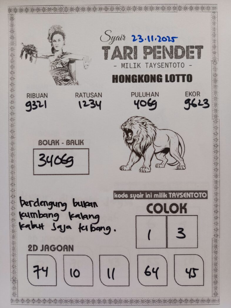 Syair Tari Pendet HK Hari Minggu, 23 November 2025
