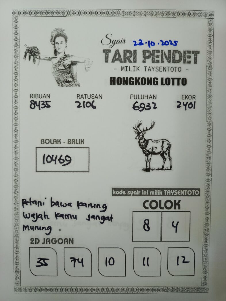 Syair Tari Pendet HK Hari Kamis, 23 Oktober 2025