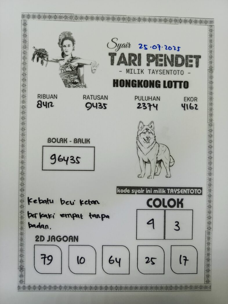Syair Tari Pendet HK Hari Jumat, 25 Juli 2025