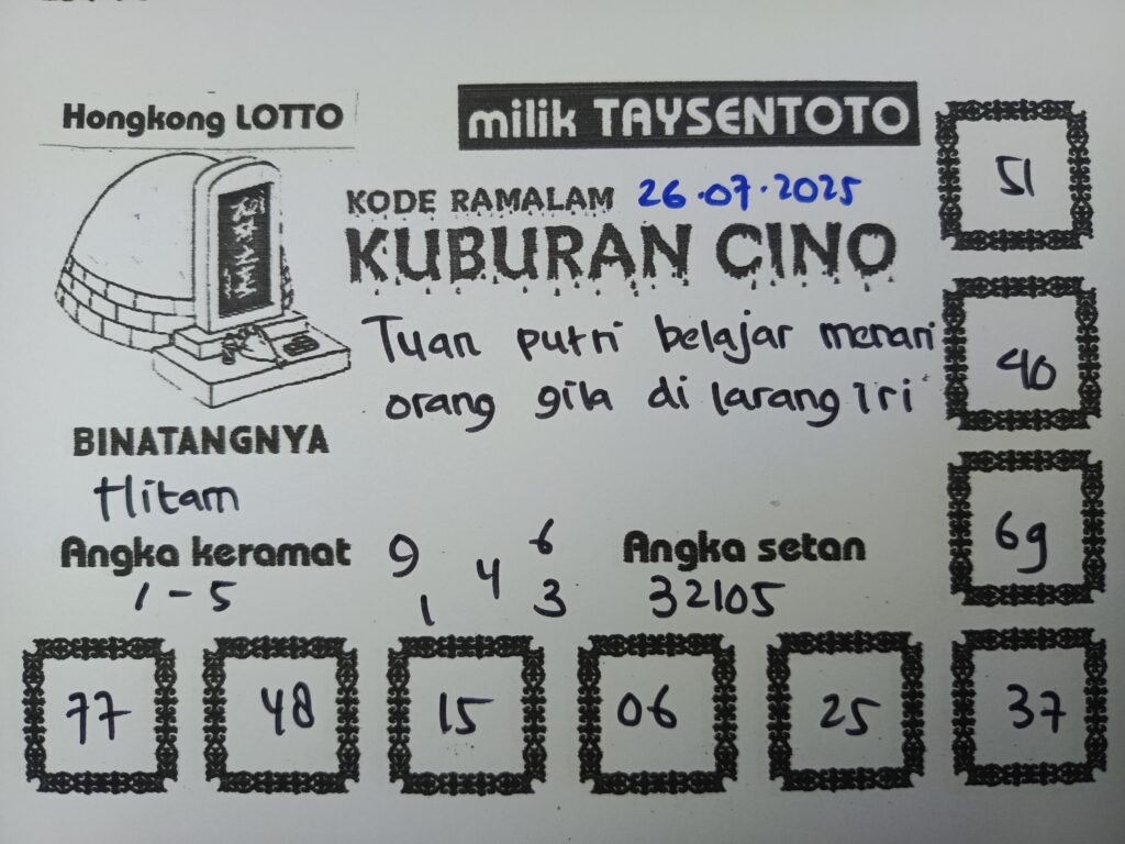 Syair Kuburan Cino HK Hari Sabtu, 26 Juli 2025