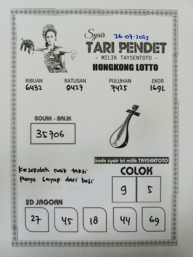 Syair Tari Pendet HK Hari Sabtu, 26 Juli 2025