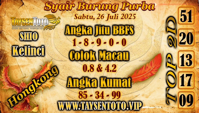Syair Burung Purba HK Hari Sabtu, 26 Juli 2025