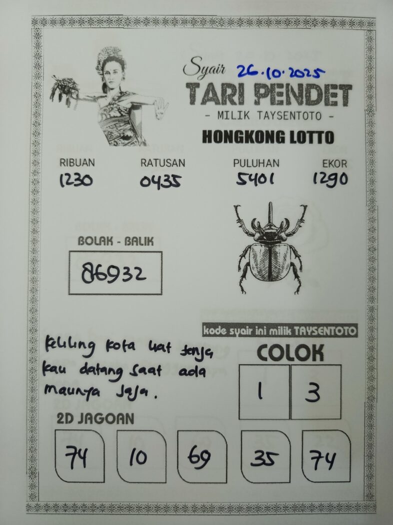 Syair Tari Pendet HK Hari Minggu, 26 Oktober 2025