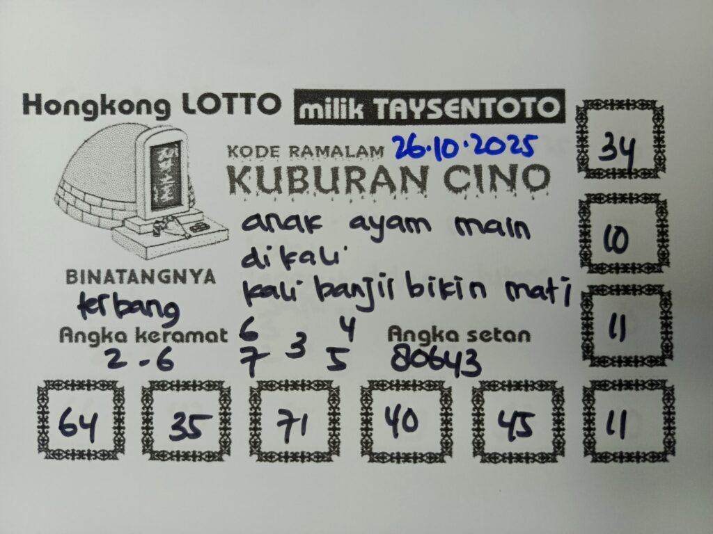 Syair Kuburan Cino HK Hari Minggu, 26 Oktober 2025