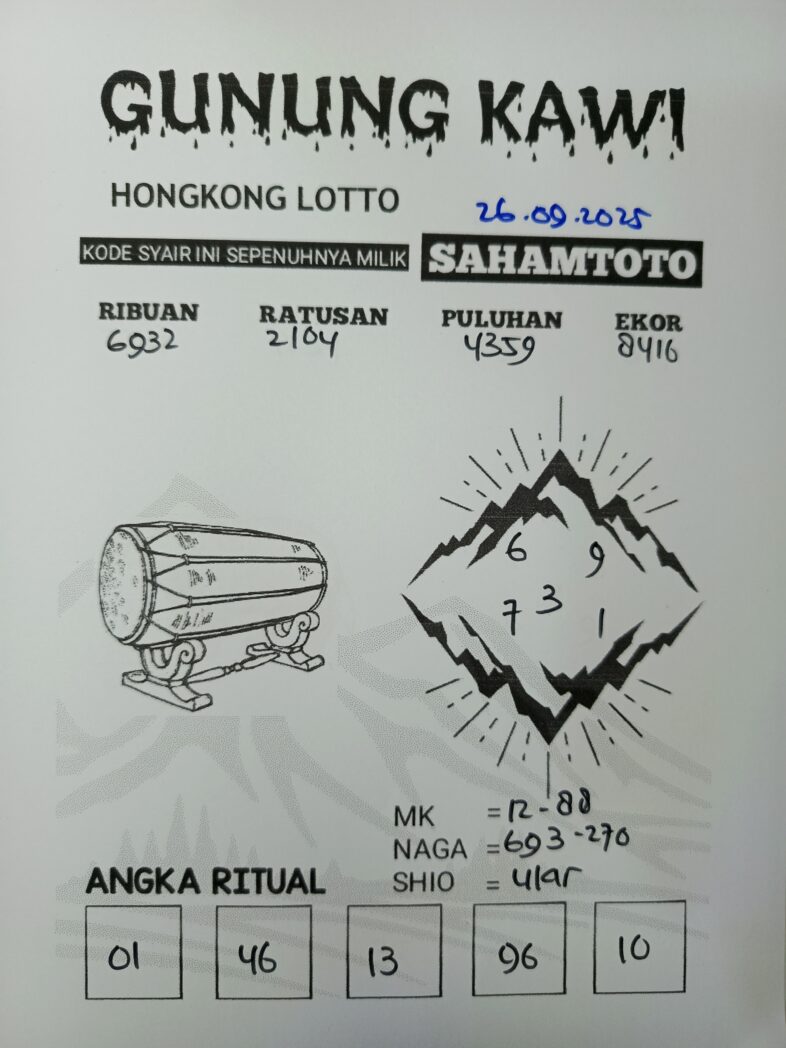 Syair Gunung Kawi HONGKONG LOTTO Hari ini Jumat 26 September 2025
