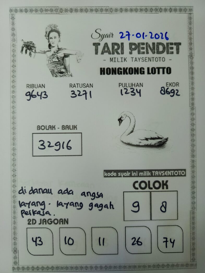 Syair Tari Pendet HK Hari Selasa, 27 Januari 2026