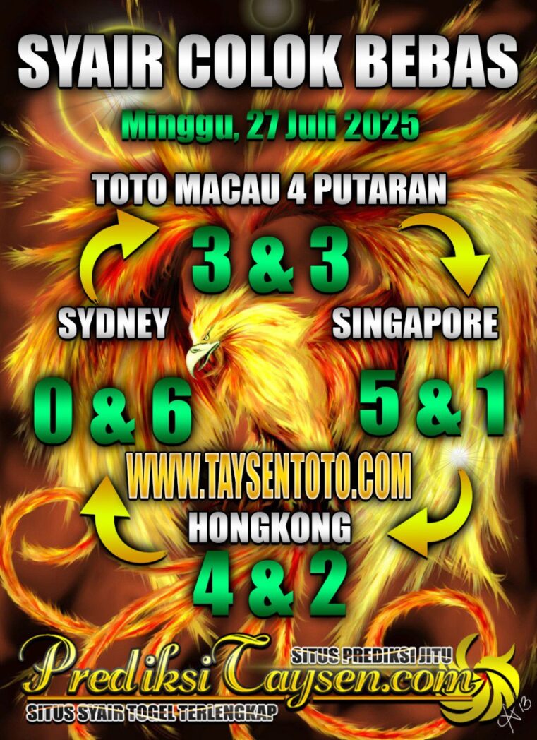 SYAIR TAYSEN HK – Selamat datang di Situs Prediksi Togel Jitu dan Terpercaya. Hari ini kita akan mengulas Syair Togel HK 27 Juli 2025. Syair HK ini semata-mata hanya dibuat untuk membantu mempermudah para pemain togel online dalam menebak secara tepat Angka Keluaran Hongkong.