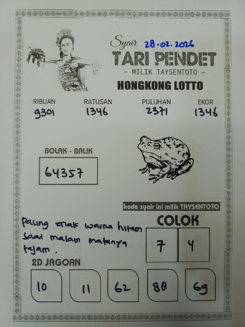 Syair Tari Pendet HK Hari Sabtu, 28 Februari 2026