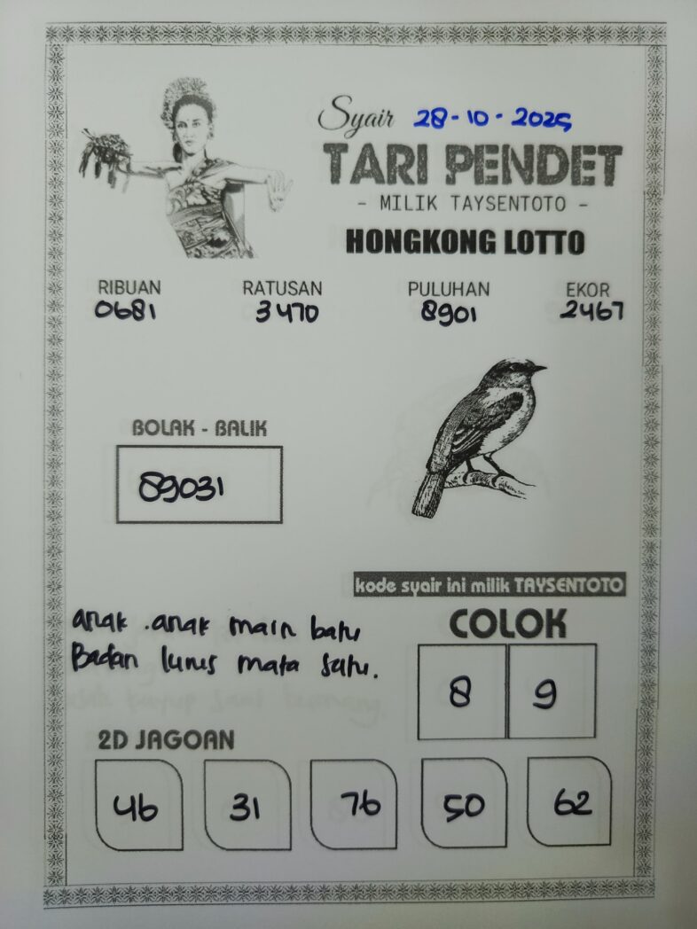 Syair Tari Pendet HK Hari Selasa, 28 Oktober 2025