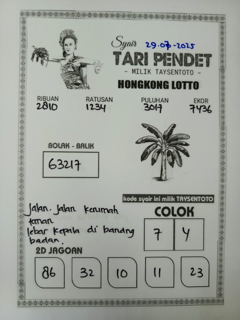 Syair Tari Pendet HK Hari Selasa, 29 Juli 2025