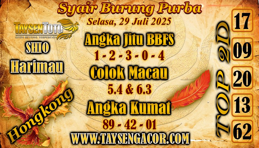 Syair Burung Purba HK Hari Selasa, 29 Juli 2025