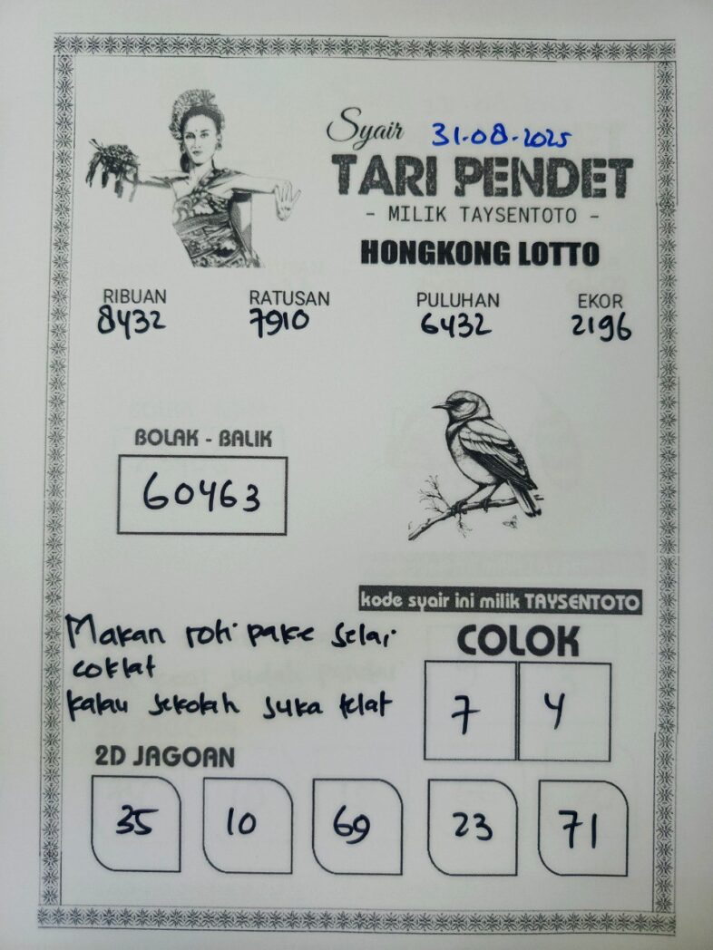 Syair Tari Pendet HK Hari Minggu, 31 Agustus 2025