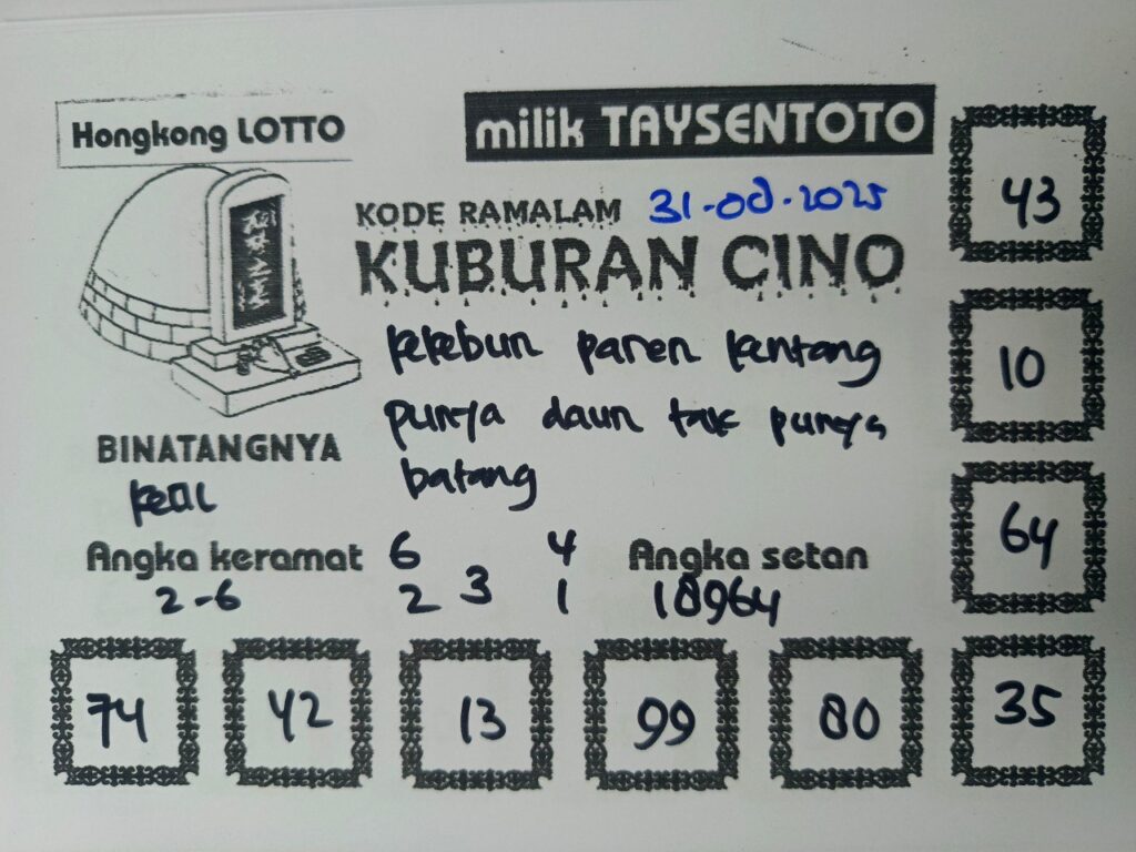 Syair Kuburan Cino HK Hari Minggu, 31 Agustus 2025