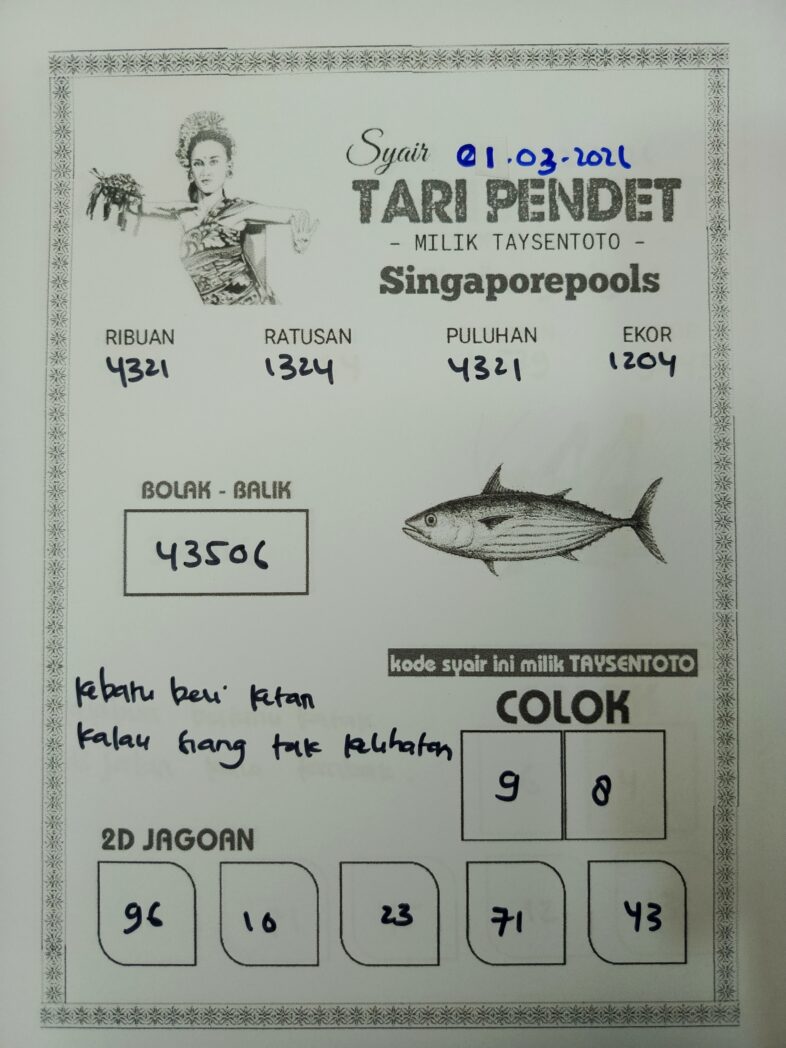 Syair Tari Pendet SGP Hari ini Minggu, 01 Maret 2026