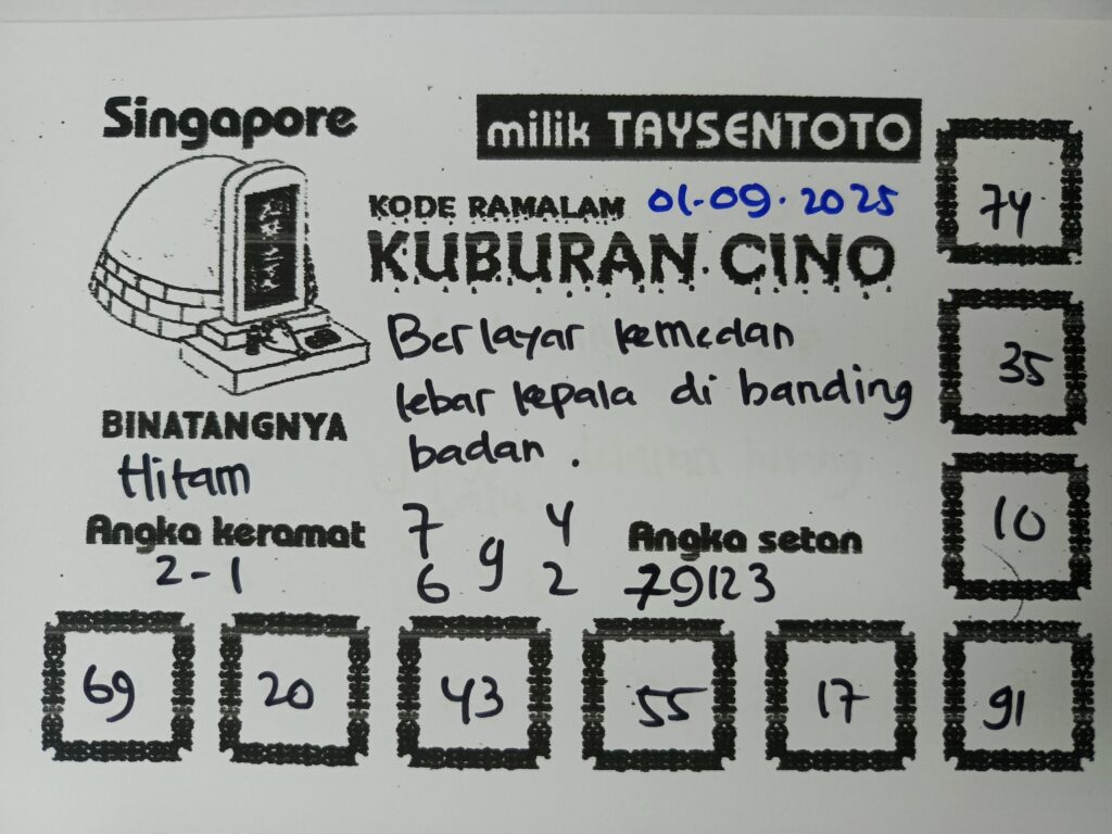 Syair Kuburan Cino SGP Hari ini Senin, 01 September 2025