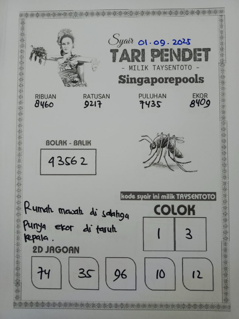 Syair Tari Pendet SGP Hari ini Senin, 01 September 2025