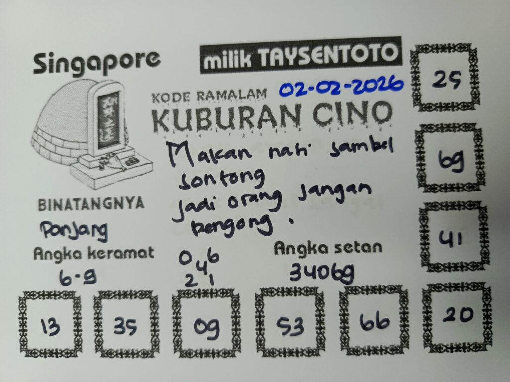 Syair Kuburan Cino SGP Hari ini Senin, 02 Februari 2026