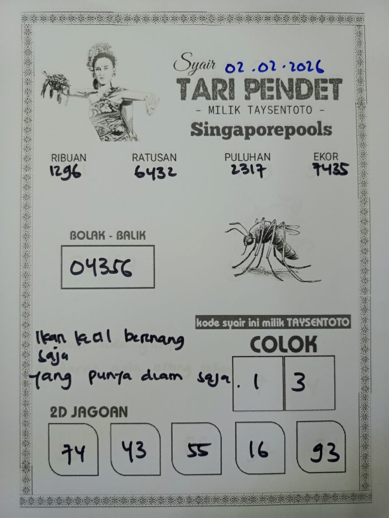 Syair Tari Pendet SGP Hari ini Senin, 02 Februari 2026