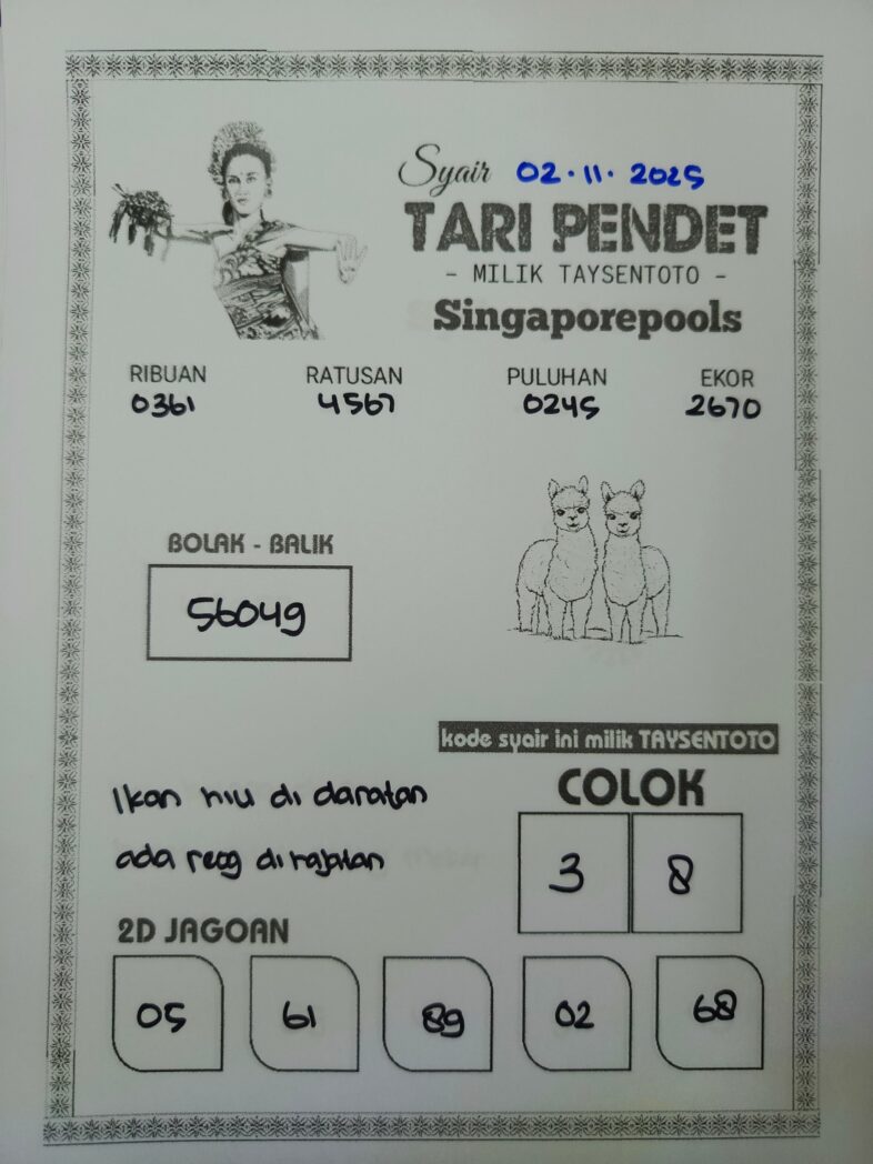 Syair Tari Pendet SGP Hari ini Minggu, 02 November 2025