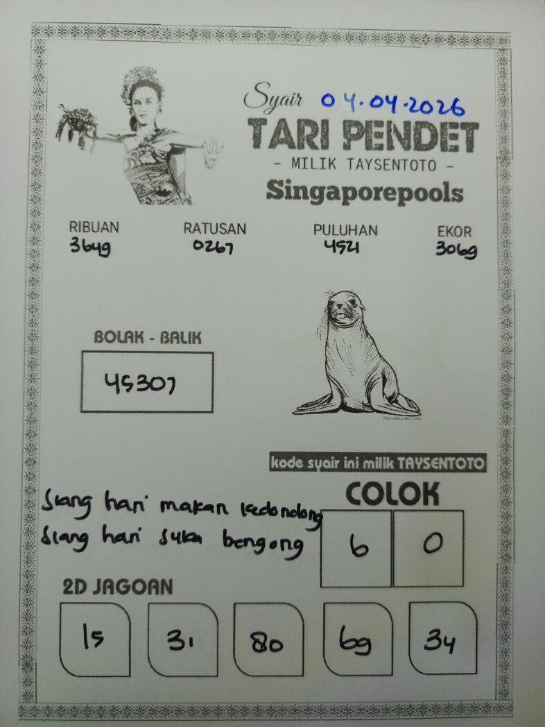 Syair Tari Pendet SGP Hari ini Sabtu, 04 April 2026