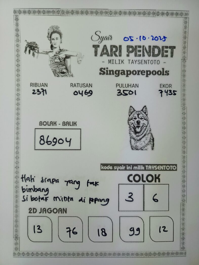 Syair Tari Pendet SGP Hari ini Minggu, 05 Oktober 2025