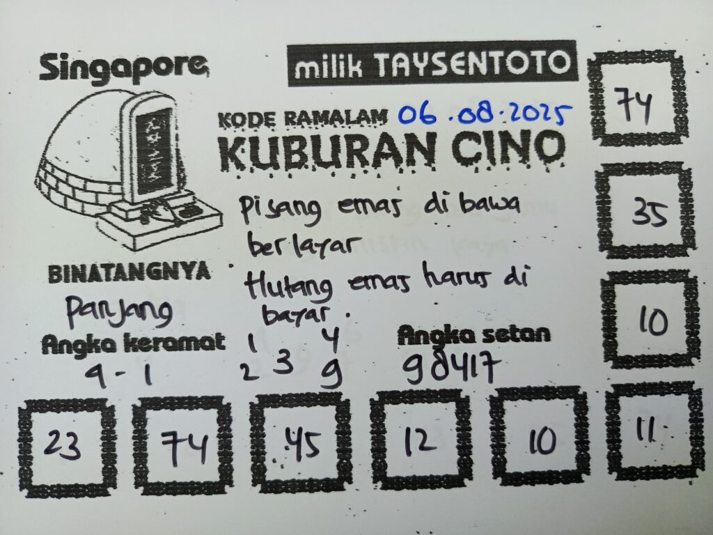 Syair Kuburan Cino SGP Hari ini Senin, 04 Agustus 2025