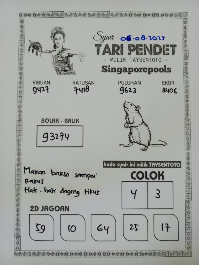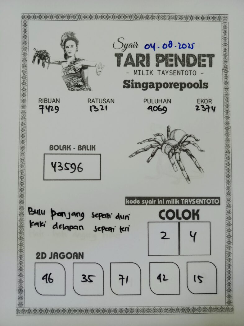 Syair Tari Pendet SGP Hari ini Senin, 04 Agustus 2025