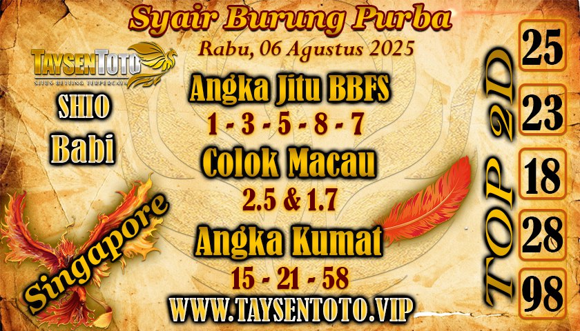 SYAIR TAYSEN SGP – Selamat datang di Situs Prediksi Togel Jitu dan Terpercaya. Hari ini kita akan mengulas Syair Togel SGP 06 Agustus 2025 para pemain togel online dalam menebak secara tepat Angka Keluaran SGP.