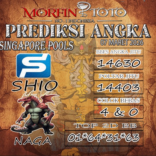 Syair lipan sakti SINGAPORE POOLS Hari ini sabtu 07 MARET 2026