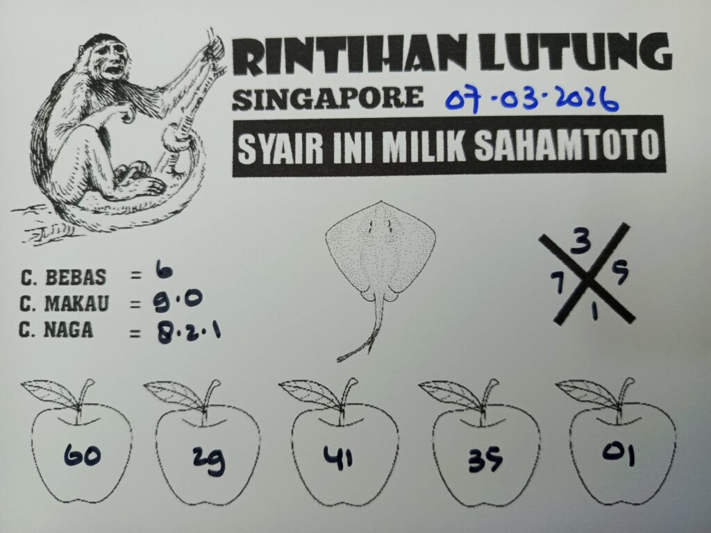 Syair Rintihan Lutung SINGAPORE POOLS Hari ini sabtu 07 MARET 2026
