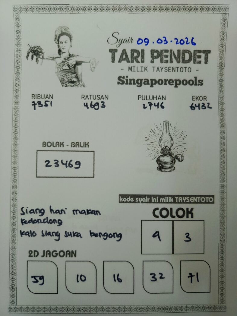 Syair Tari Pendet SGP Hari ini Senin, 09 Maret 2026