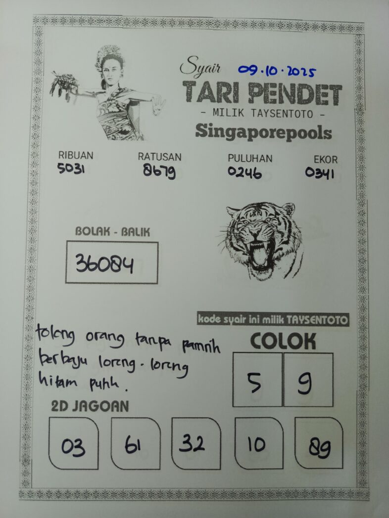 Syair Tari Pendet SGP Hari ini Kamis, 09 Oktober 2025