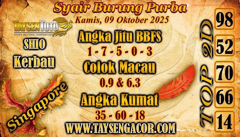 Syair Burung Purba SGP Hari Kamis, 09 Oktober 2025