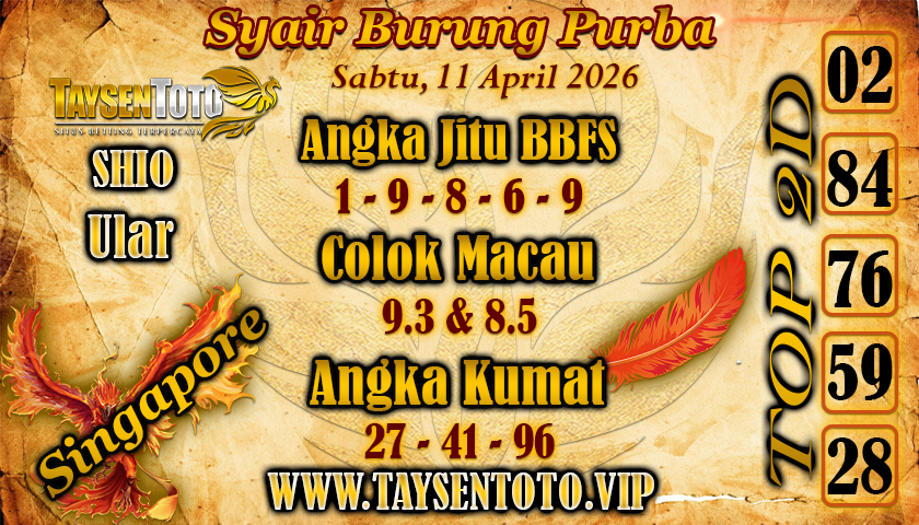 SYAIR TAYSEN SGP – Selamat datang di Situs Prediksi Togel Jitu dan Terpercaya. Hari ini kita akan mengulas Syair Togel SGP 11 April 2026 para pemain togel online dalam menebak secara tepat Angka Keluaran SGP.