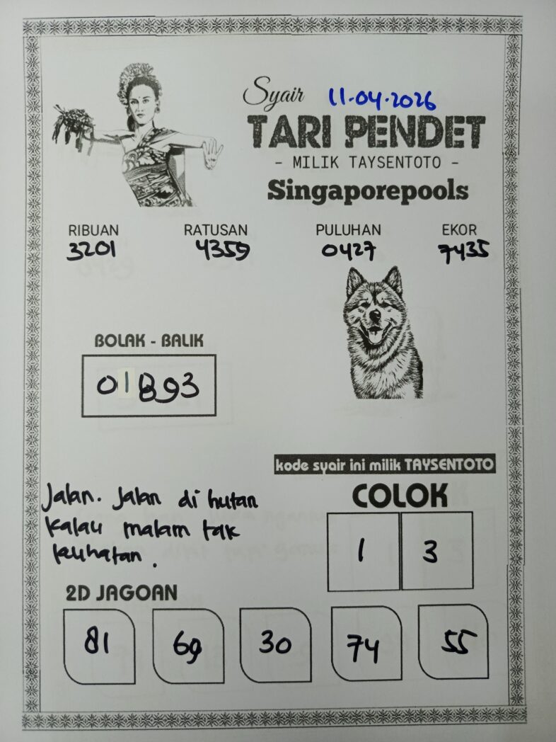Syair Tari Pendet SGP Hari ini Sabtu, 11 April 2026
