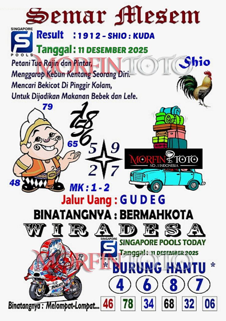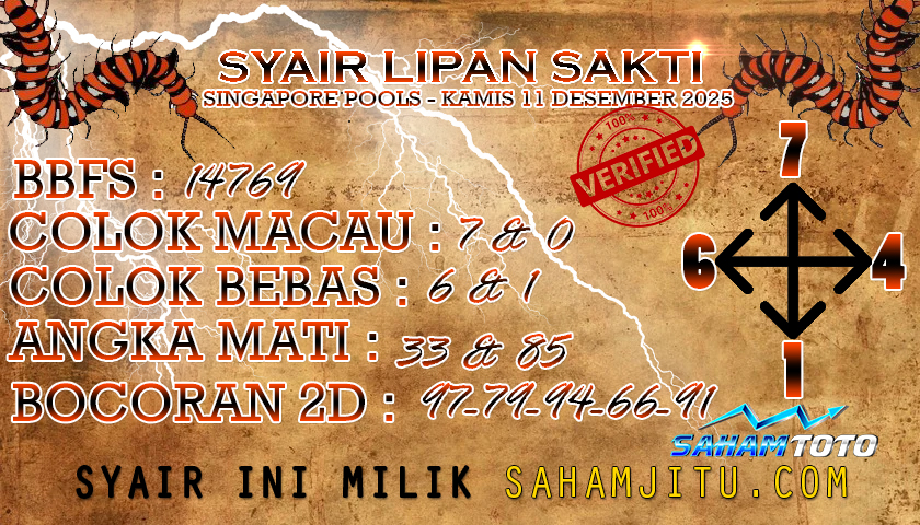 Syair lipan sakti Singapore Pools Hari ini Rabu 10 Desember 2025