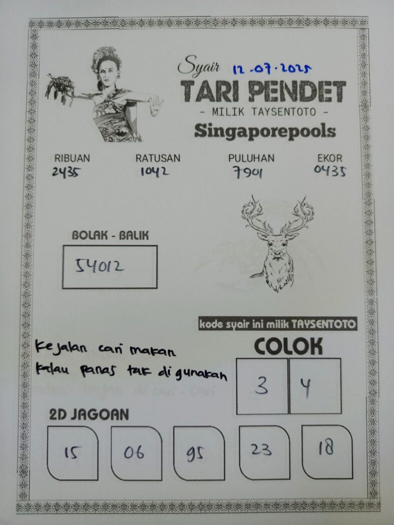Syair Tari Pendet SGP Hari ini Sabtu, 12 Juli 2025