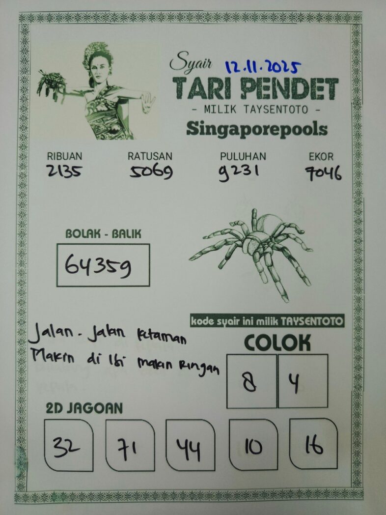 Syair Tari Pendet SGP Hari ini Rabu, 12 November 2025