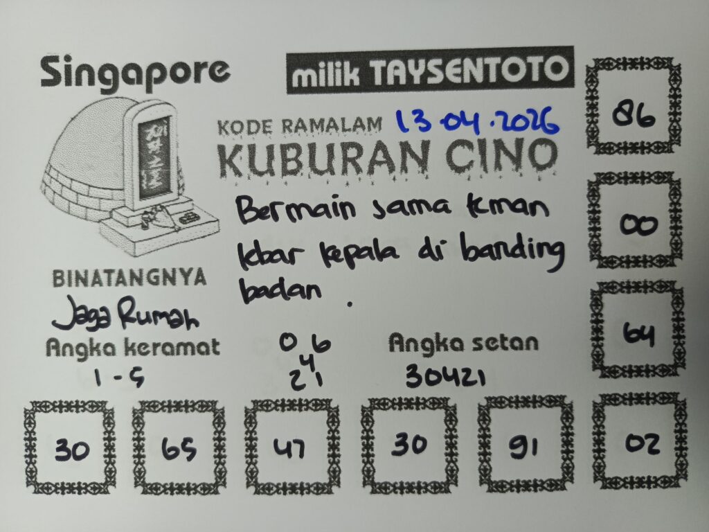 Syair Kuburan Cino SGP Hari ini Senin, 13 April 2026