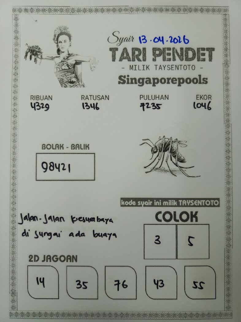 Syair Tari Pendet SGP Hari ini Senin, 13 April 2026