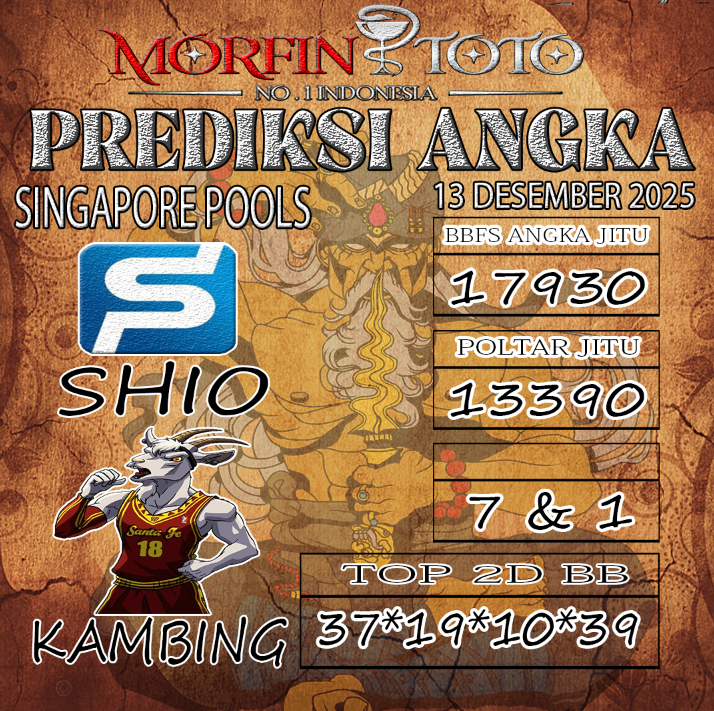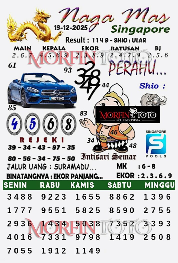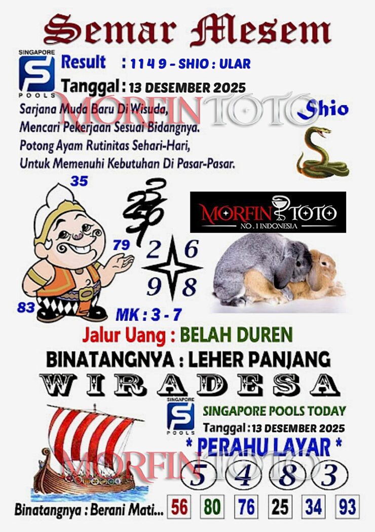 Syair lipan sakti Singapore Pools Hari ini Sabtu 13 Desember 2025