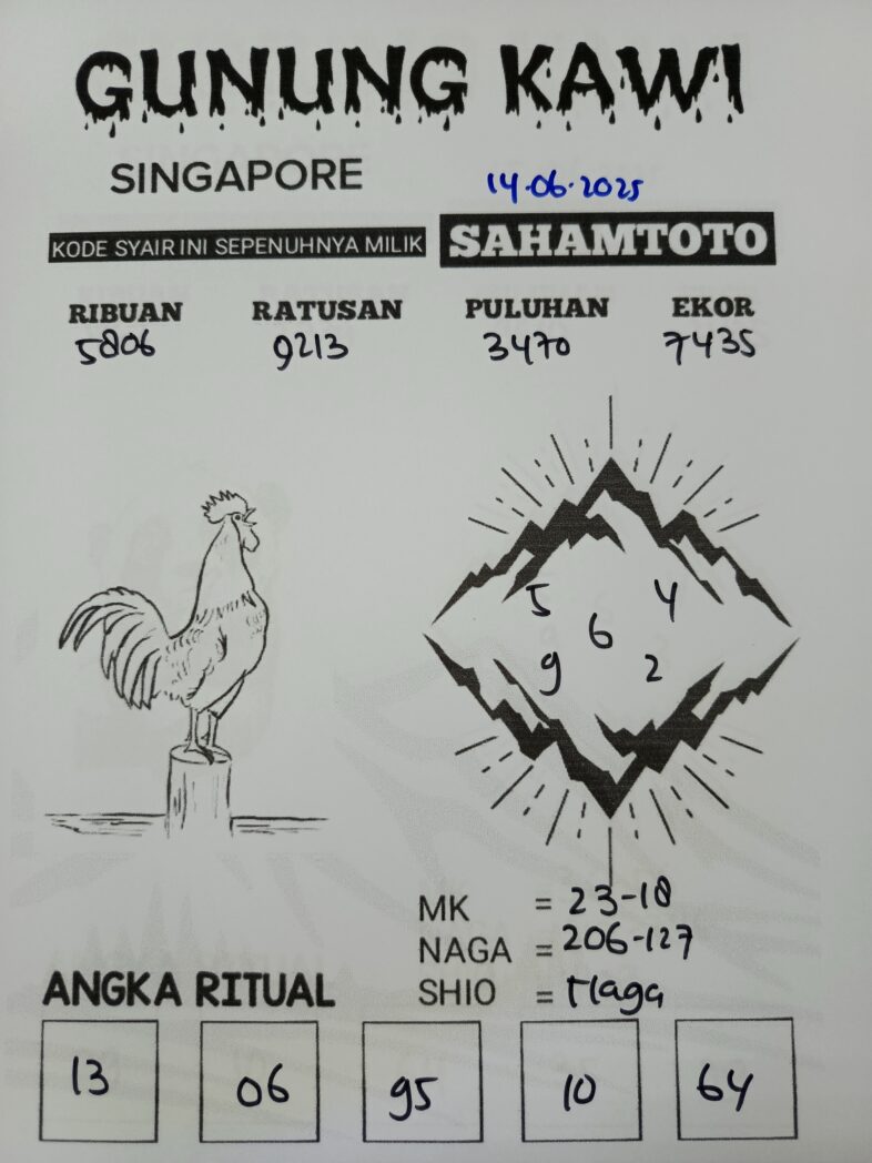 SYAIR TOGEL KAMPLENG  SINGAPORE  14 JUNI 2025