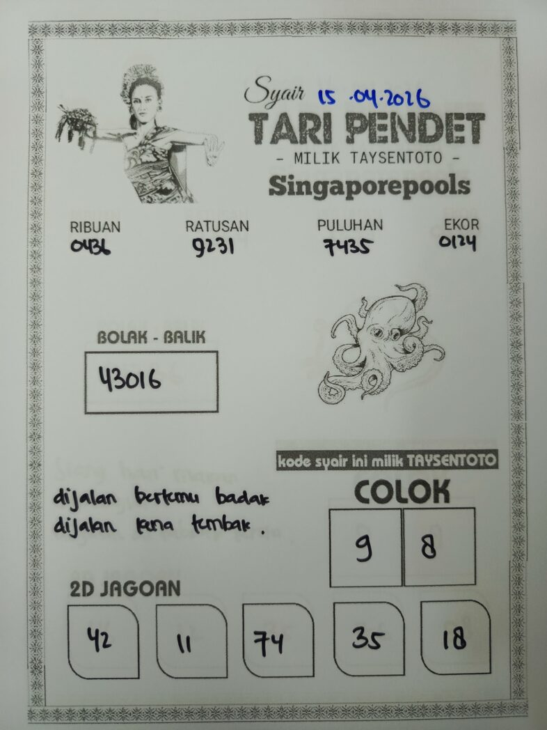 Syair Tari Pendet SGP Hari ini Rabu, 15 April 2026