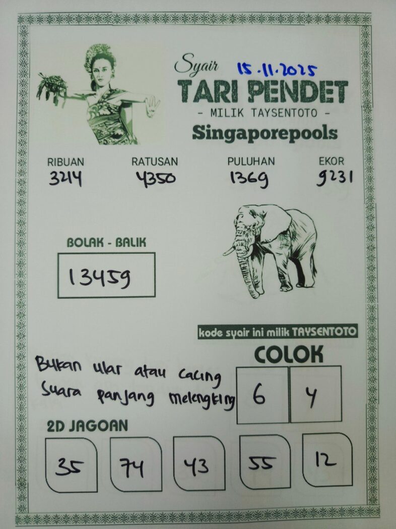 Syair Tari Pendet SGP Hari ini Sabtu, 15 November 2025