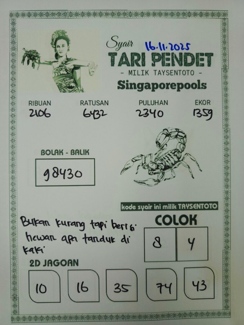 Syair Tari Pendet SGP Hari ini Minggu, 16 November 2025