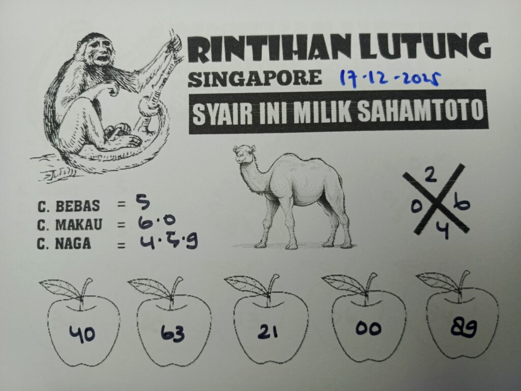 Syair Rintihan Lutung Singapore Pools Hari ini 17 Desember 2025